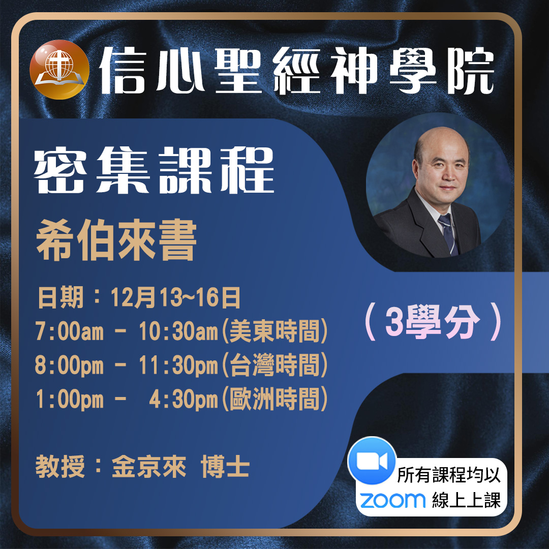 保羅書信導論和使徒行傳(2學分) 紐約時間 7:00-9:30am (Zoom線上) |