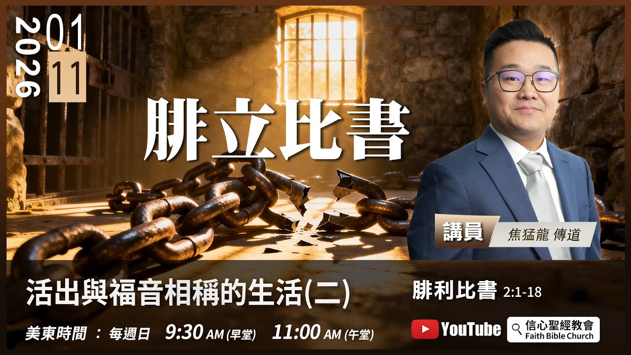 弟兄姐妹平安!恭祝各位新年蒙福,新的一年繼續在真道上長進。我今天早上要分享的題目是【活出與福音相稱的生活】(二),經文我們剛剛已經讀過,我們先一起來禱...