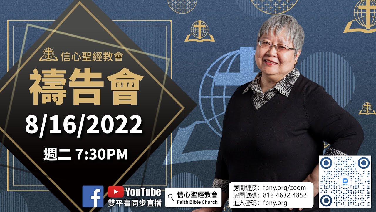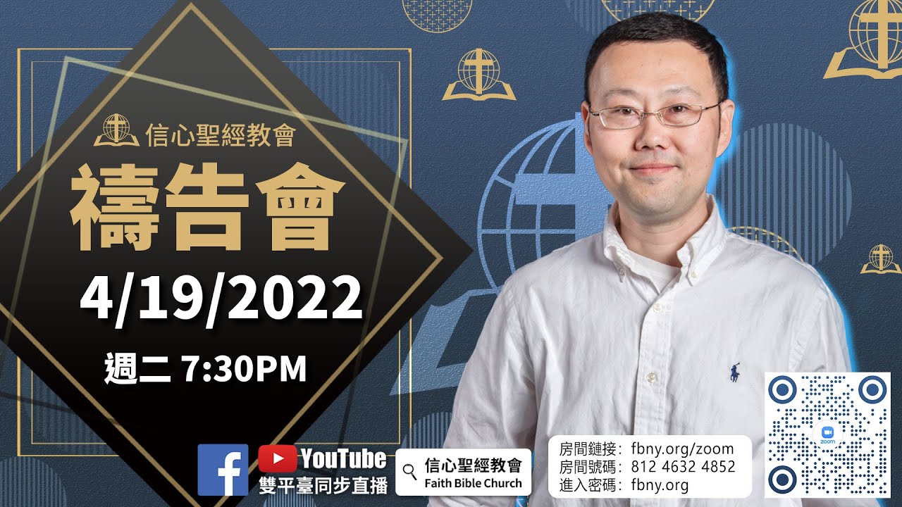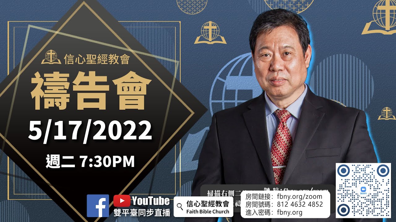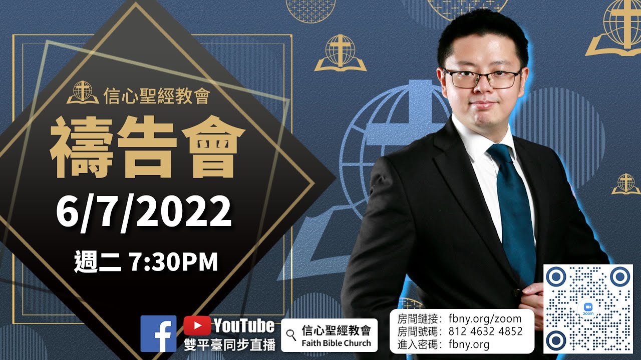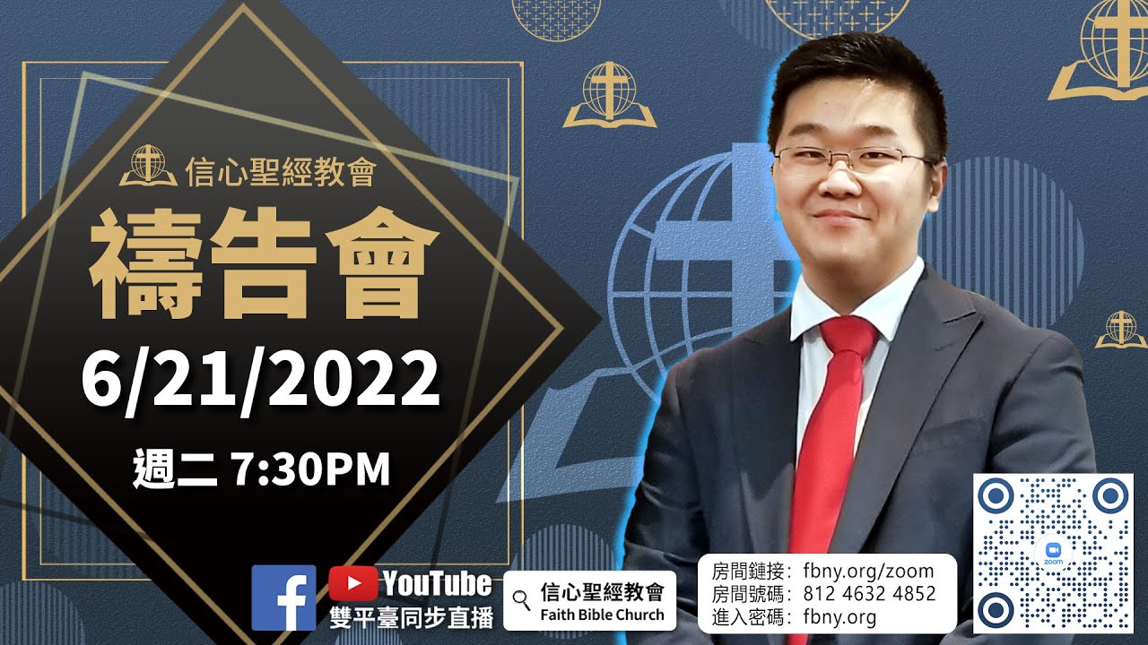 禱告會直播過後,歡迎綫上的弟兄姊妹參加zoom禱告室,我們的同工會帶領大家一起同心禱告! 【線上禱告室】:https://fbny.org/zoom ...