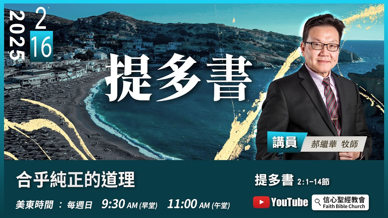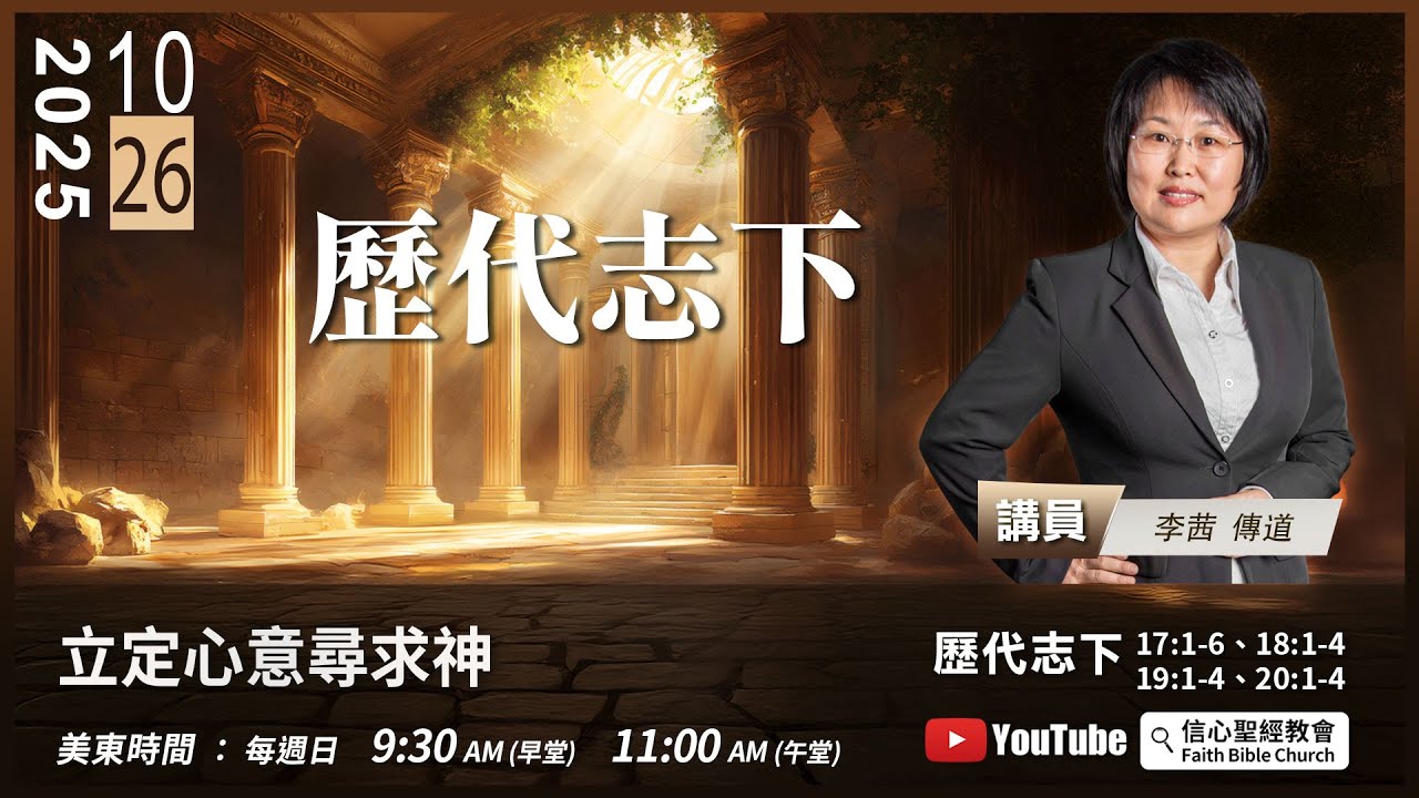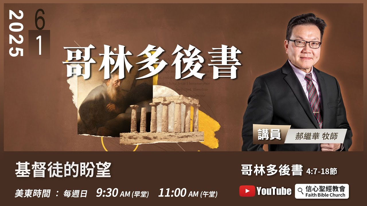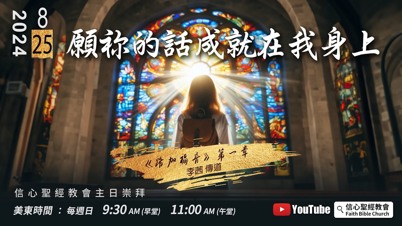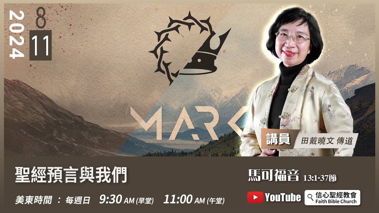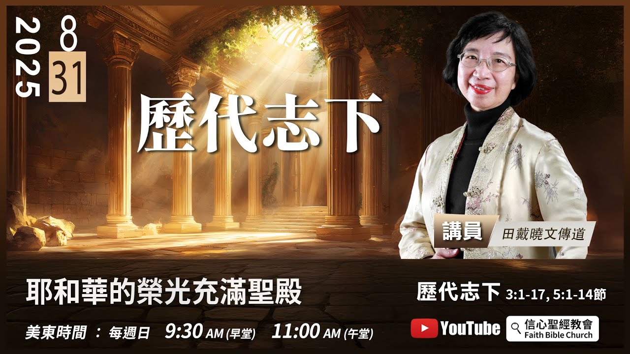 主日崇拜直播:週日美東時間 9:30AM(早堂) 11:00AM(午堂)