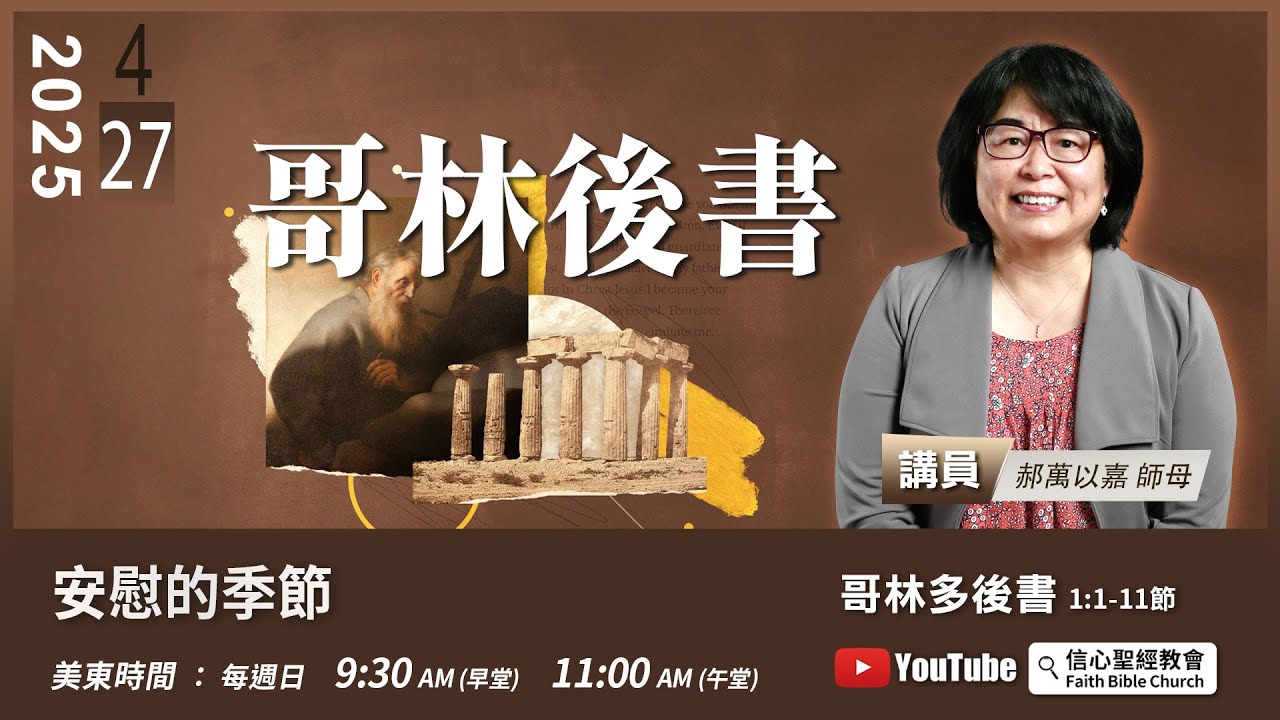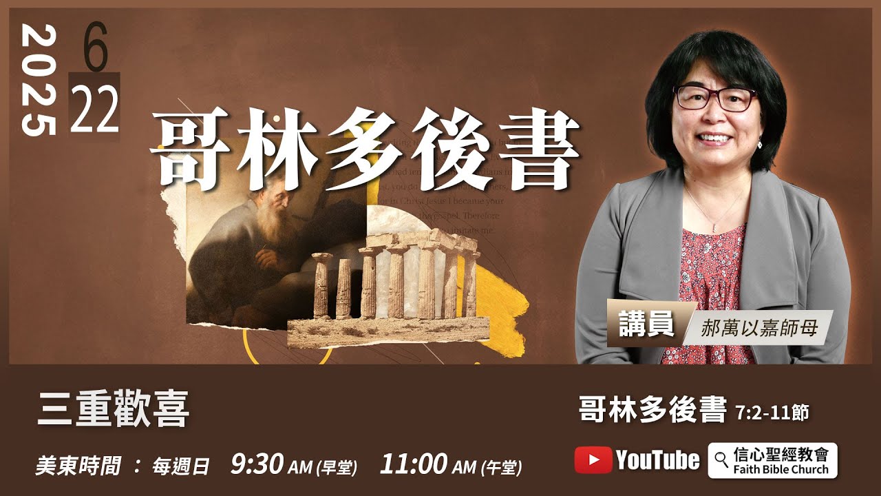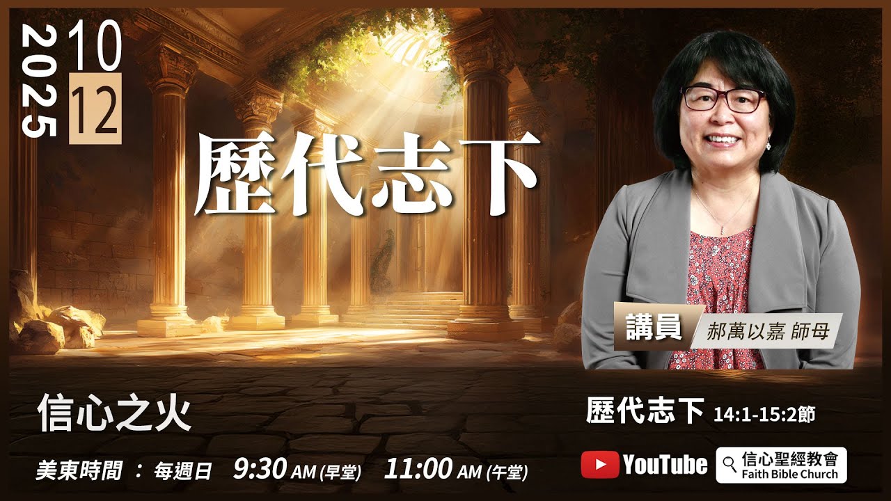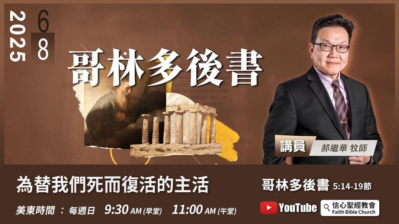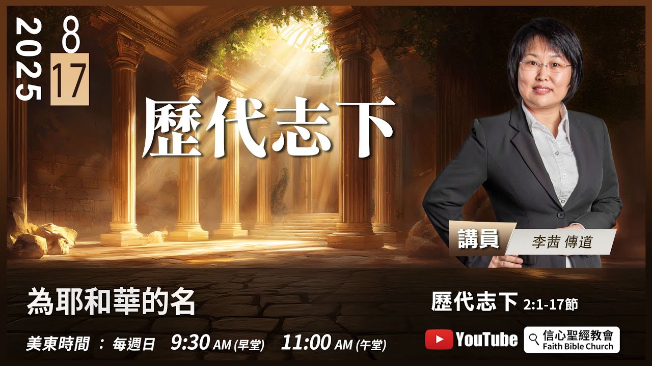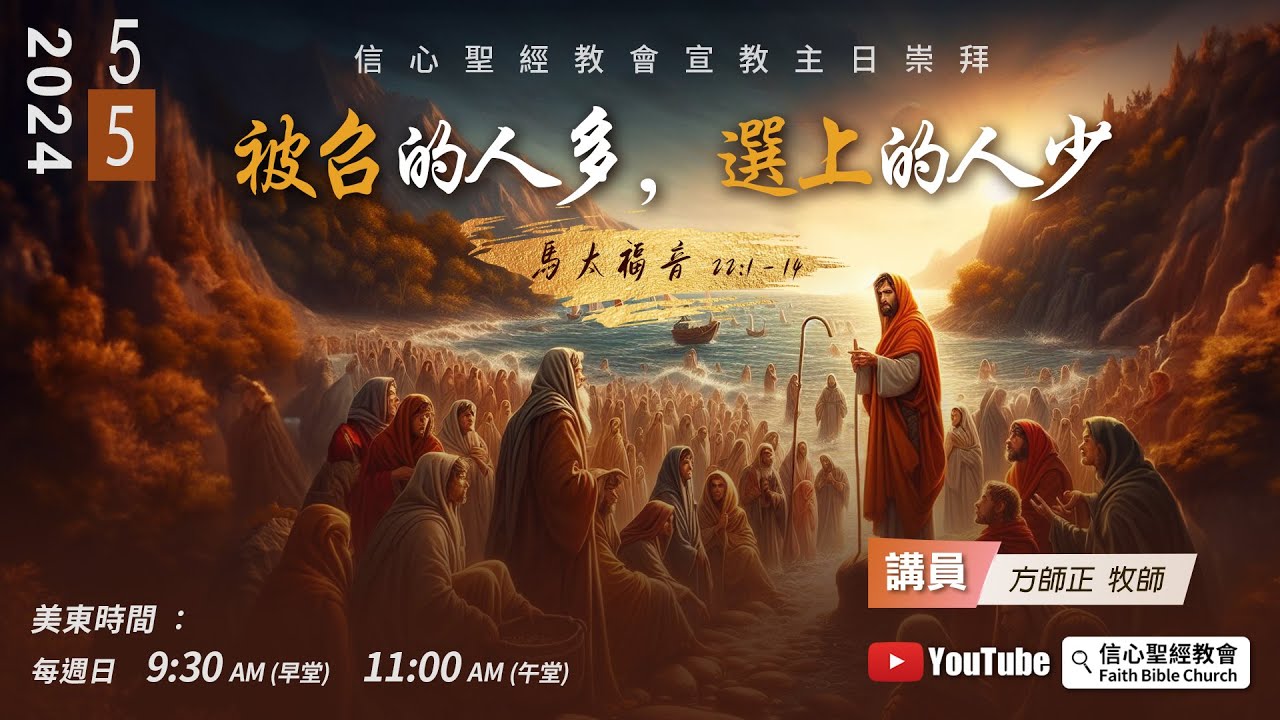 主日崇拜直播:週日美東時間 9:30AM(早堂) 11:00AM(午堂)