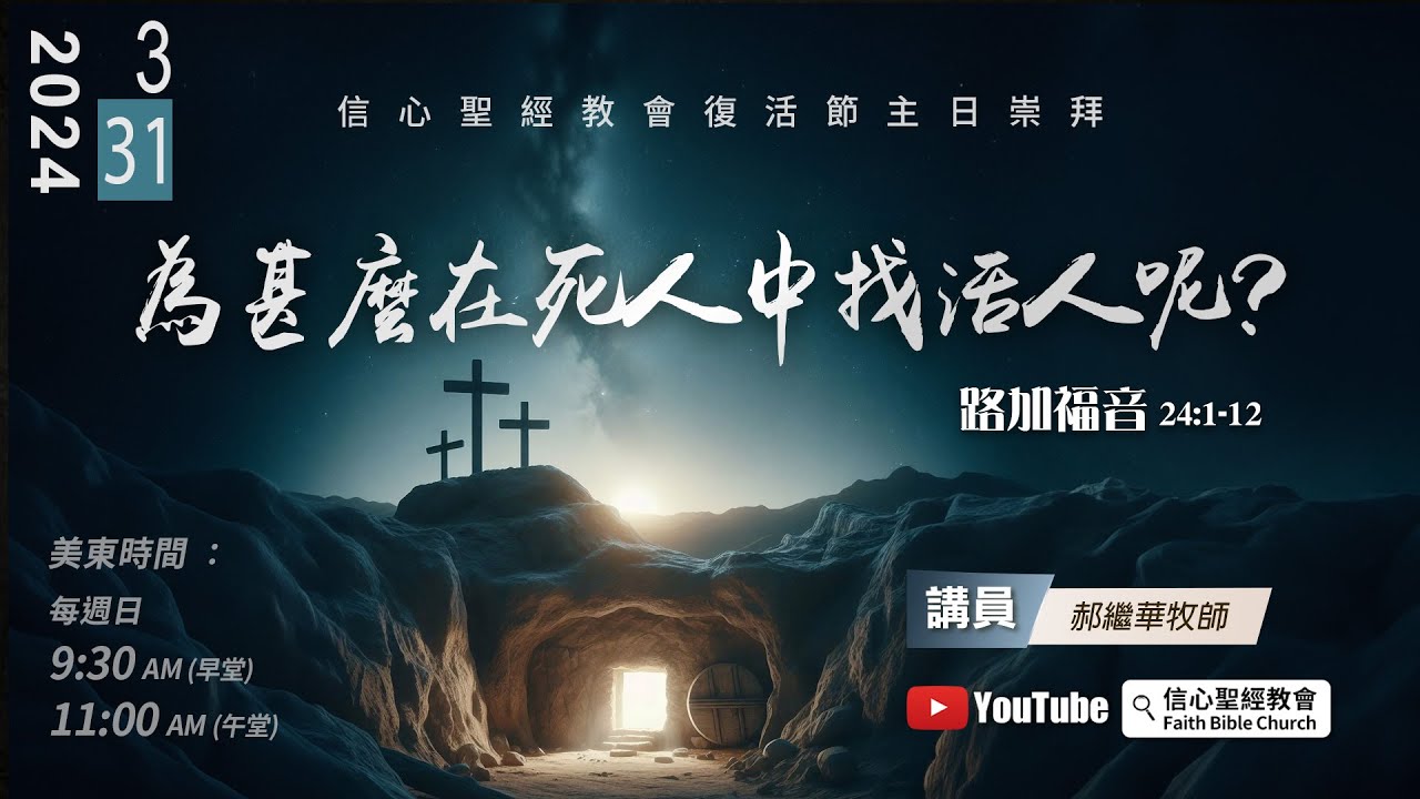 1. 復活的證據 (路24:1-3) 2. 復活的應許 (路24:6-8) 3. 復活的宣告 (路24:5)