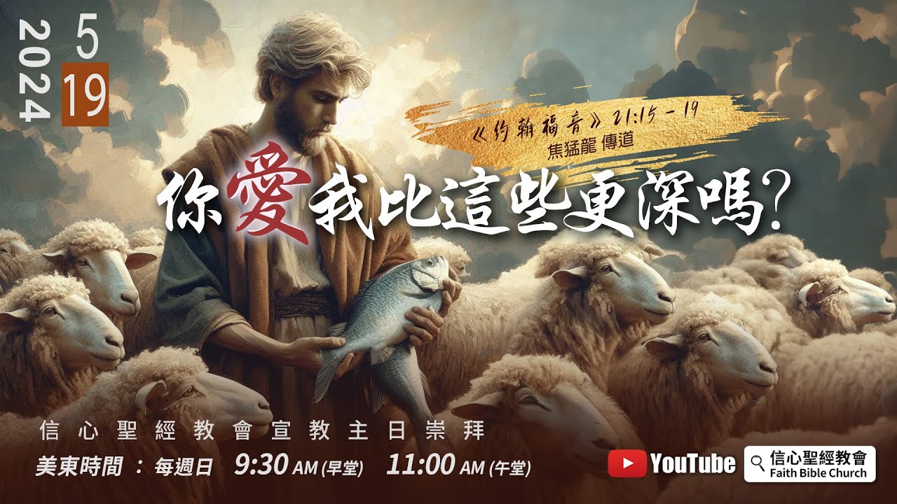 一, 牧養的托付(21:15-17) 1.三問與三否 2.愛主與牧養 二, 牧養的代價(21:18-19) 十架之路—榮耀神 弟兄姐妹平安,我今天要分...